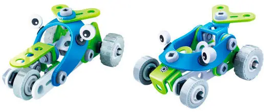 В наборе 52 детали, отвёртка, гаечный ключ и подробная инструкция внутри упаковки. Любому ребёнку будет интересно конструировать технику. При этом развивается мелкая моторика и пространственное мышление. Совсем немного терпения — и транспорт готов. Элементы изготовлены из мягкого пластика, который гнётся, но при этом отлично держит форму. Продукция сертифицирована, прошла строгий контроль качества.