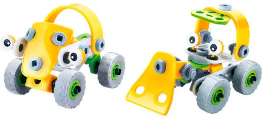 В наборе 52 детали, отвёртка, гаечный ключ и подробная инструкция внутри упаковки. Любому ребёнку будет интересно конструировать технику. При этом развивается мелкая моторика и пространственное мышление. Совсем немного терпения — и транспорт готов. Элементы изготовлены из мягкого пластика, который гнётся, но при этом отлично держит форму. Продукция сертифицирована, прошла строгий контроль качества.
