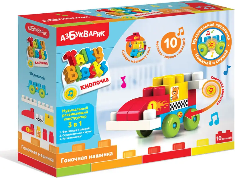 Гоночная машинка Talky Blocks кнопочка, Азбукварик