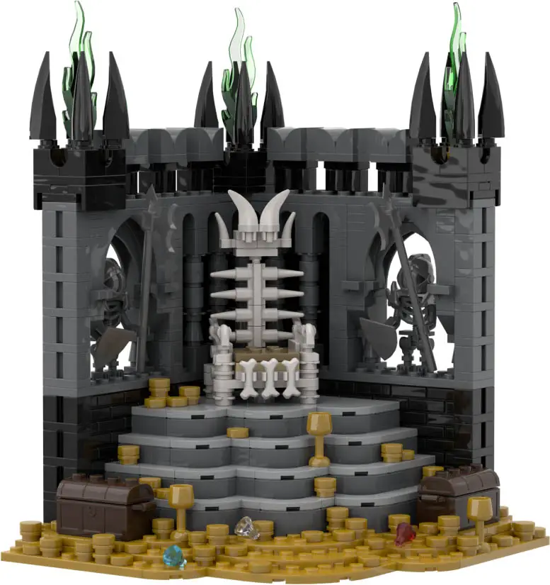 В наборе есть фигурка Кощея Бессмертного. У основания его трона расположены сундуки с сокровищами, а в одном из них спрятана золотая игла.