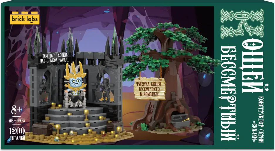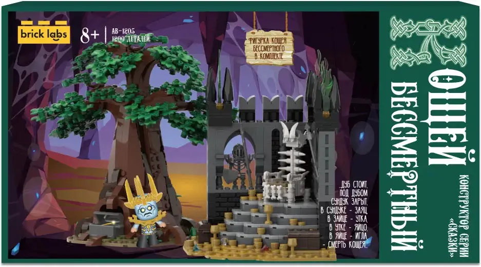 Конструктор Brick Labs "Кощей бессмертный" создан по мотивам известной сказки. Он состоит из деталей, которые совместимы с продукцией других крупных производителей, например, LEGO.