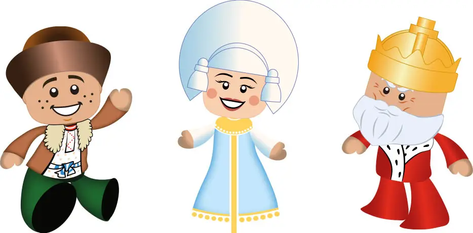 В наборе представлены фигурки Емели, Марии, рыжего кота и царя. Дом Емели оснащён съёмной стеной и выезжающей печкой. Отдельно прилагается прорубь с щукой. Внутри набора находятся уникальные аксессуары, такие как вёдра, ухват и посуда.
