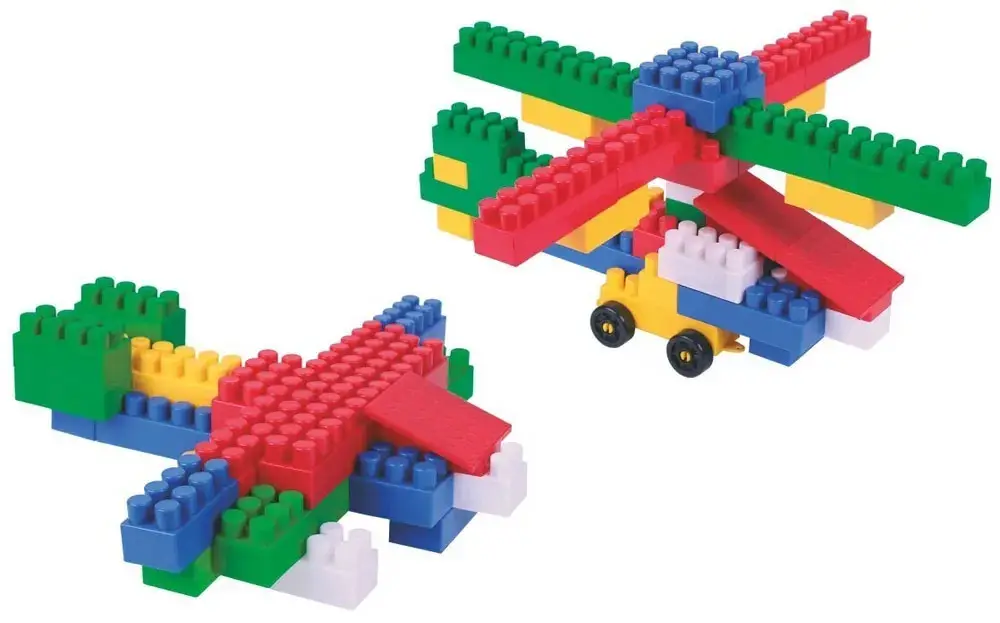 - в наборе 100 интересных разнообразных деталей ярких классических цветов;