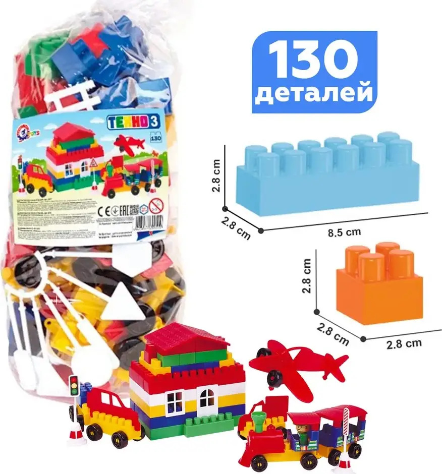 Конструктор Техно №3, 130 элементов, 15х15х50 см