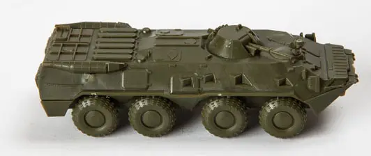БТР - 80 разработан и поступил на вооружение Советской армии в 1984 году. В машине были реализованы новые узлы и агрегаты, а также новые способы защиты, разработанные на афганском опыте. БТР -80 является универсальным средством доставки солдат к переднему краю. Не плохая защита, удобные бойницы для стрельбы из машины на ходу, а также умение плавать – делает его универсальной боевой машиной.