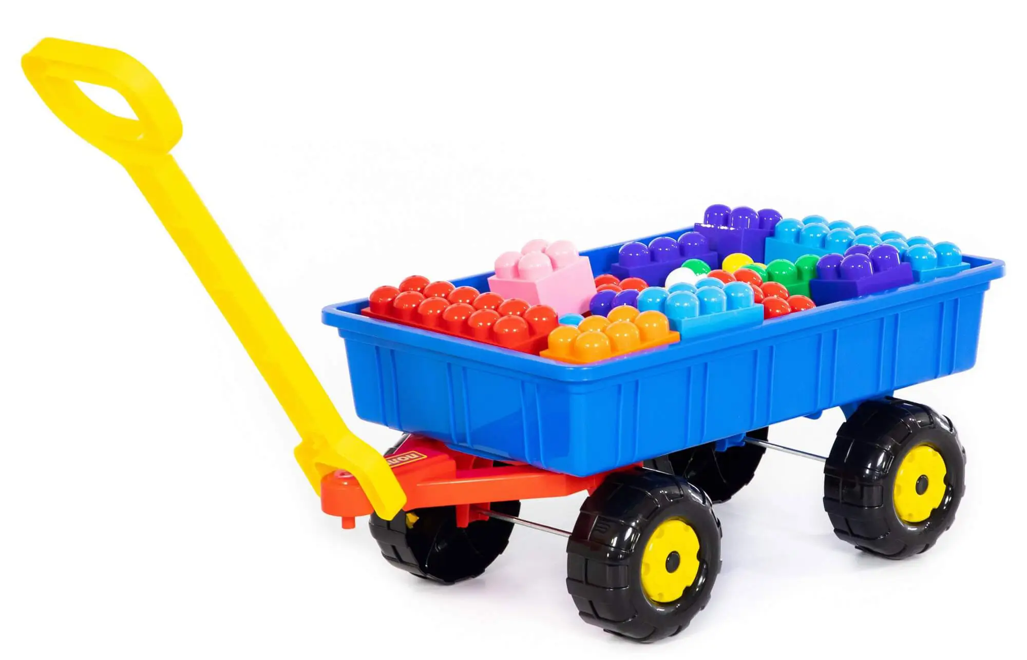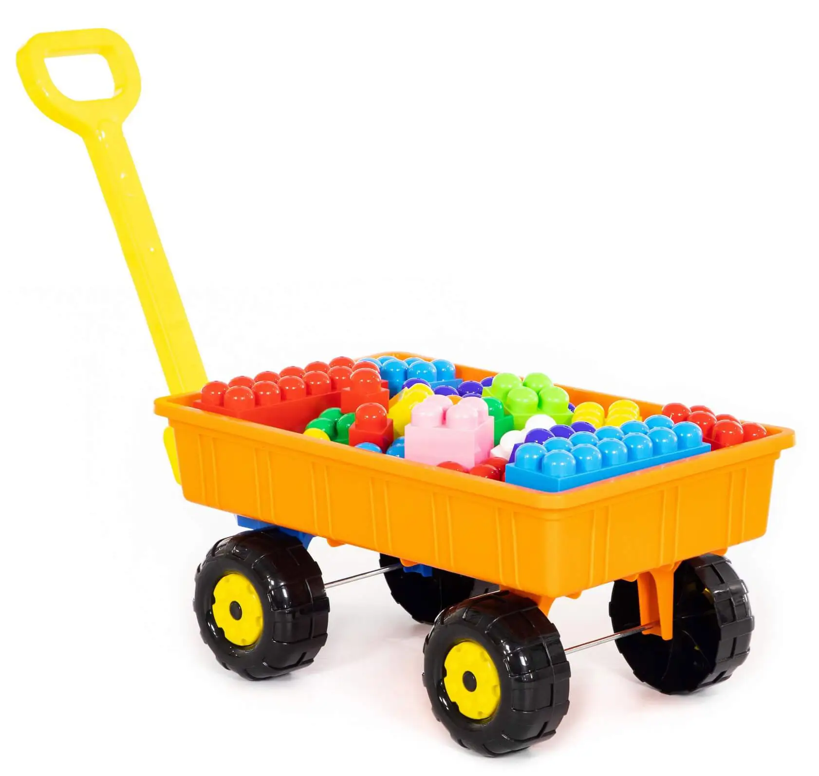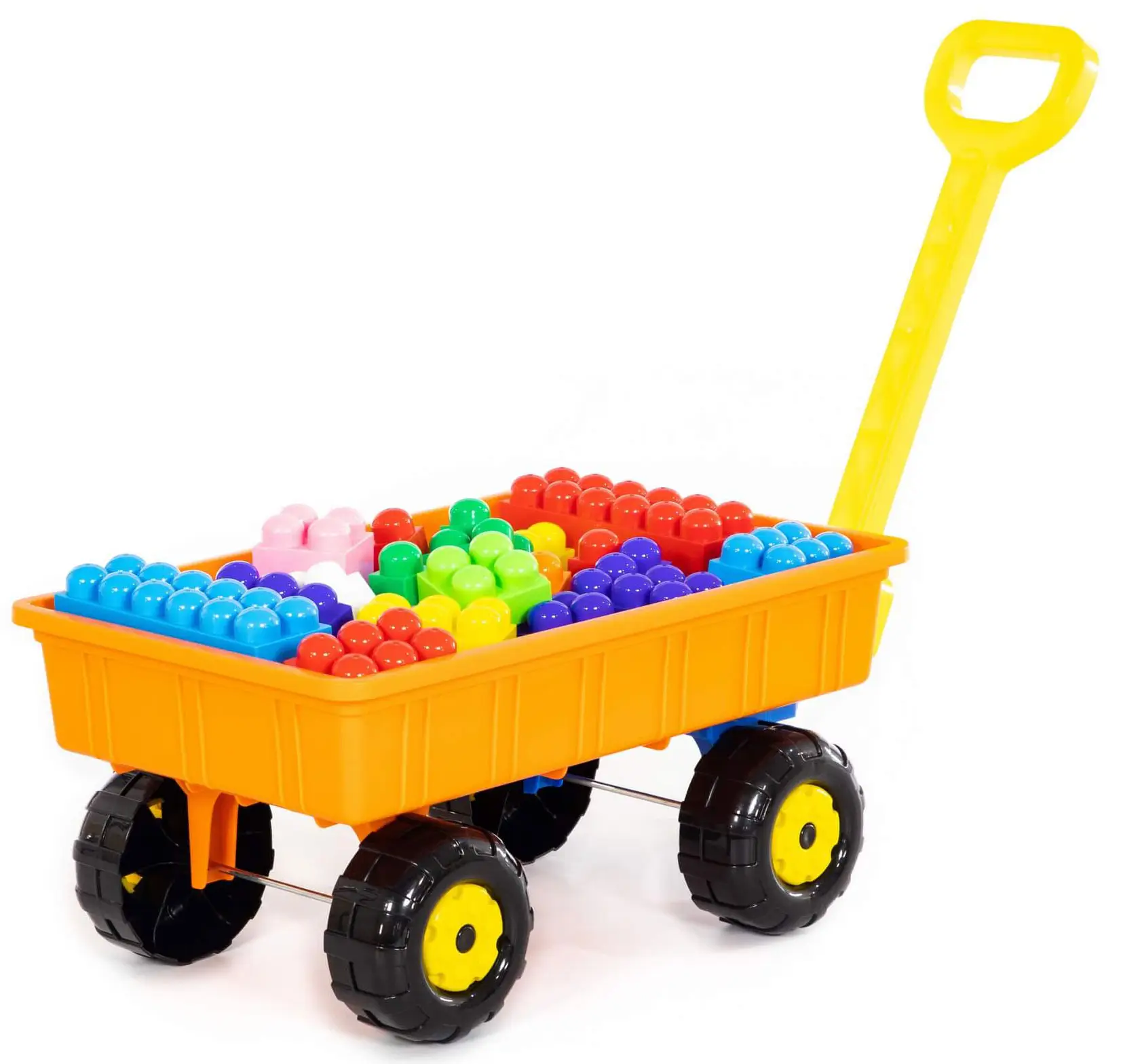 Данный набор от фабрики Полесье станет незаменимой игрушкой для весёлого времяпрепровождения малыша на даче. Кроме того, тележка отлично подойдёт для игр в песочнице и дома. Конструкция игрушки предполагает наличие 4- колёс на прочных железных осях, также для удобства перемещения предусмотрена ручка. Тележка представлена в двух расцветках: синей и оранжевой. В ней будет удобно хранить и перевозить другие игрушки. Разнообразит игру и сделает её ещё интереснее наличие в наборе конструктора Великан 32 элемента.