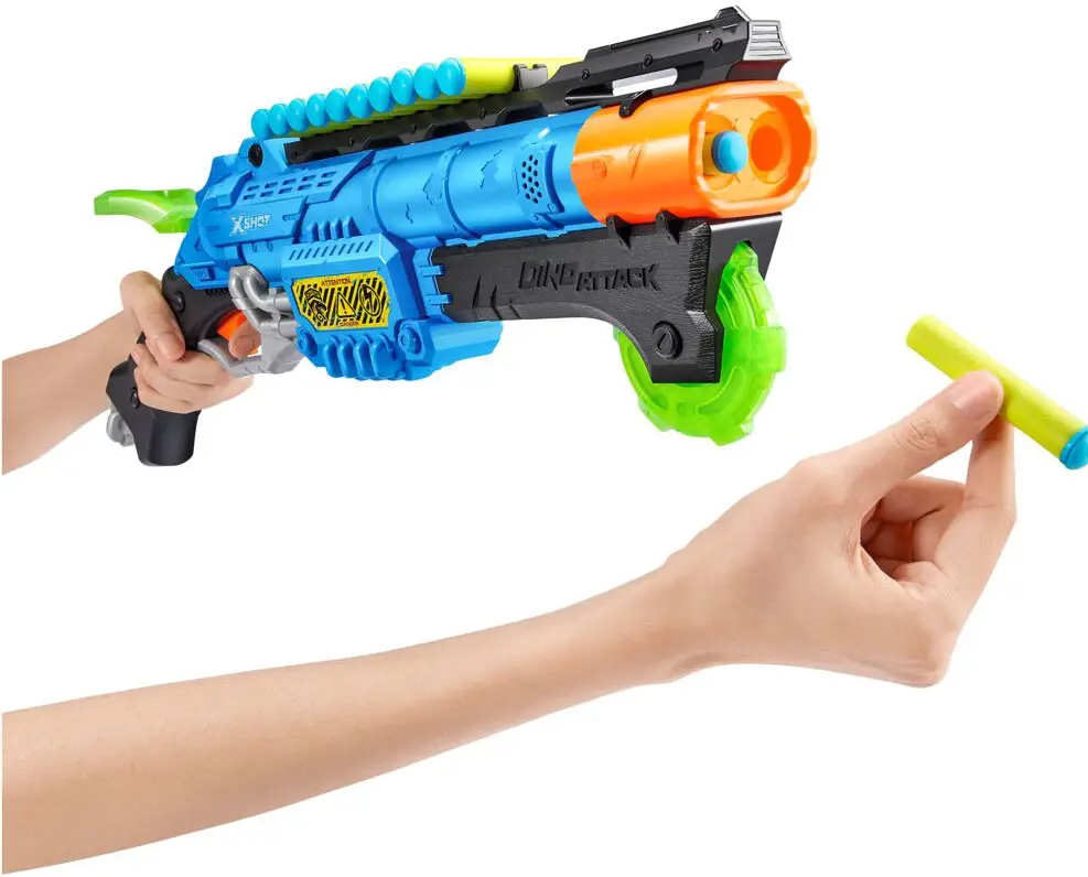 Игровой бластер Zuru X-Shot поражает цель с расстояния до 27 метров. Он оснащён двумя барабанами на 2 дротика и дополнительной обоймой на 10 дротиков, чтобы вы всегда были готовы к бою.