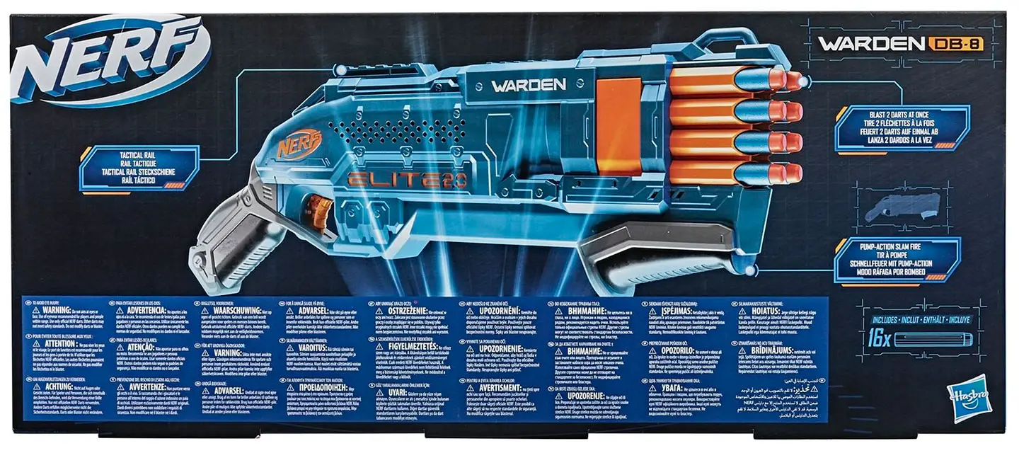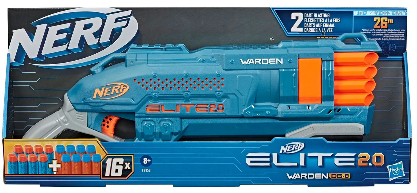 Бластер оснащён встроенными элементами индивидуальной настройки, которые позволяют улучшать оружие и получать преимущество в соревнованиях Nerf. Создайте арсенал бластеров Nerf Elite 2.0, чтобы оптимизировать стратегию игры и использовать особые тактические приемы и гибкие возможности в каждой миссии или битве! Бластер Nerf Elite 2.0 Warden DB-8 выпускает по 2 стрелы одновременно, сражая врагов двойной огневой мощью! Бластер рассчитан на 8 стрел, благодаря чему в ходе битвы можно выпустить целый ряд стрел и только потом прибегнуть к перезарядке. Воспользуйтесь тактической планкой для подготовки бластера к любой миссии или битве.