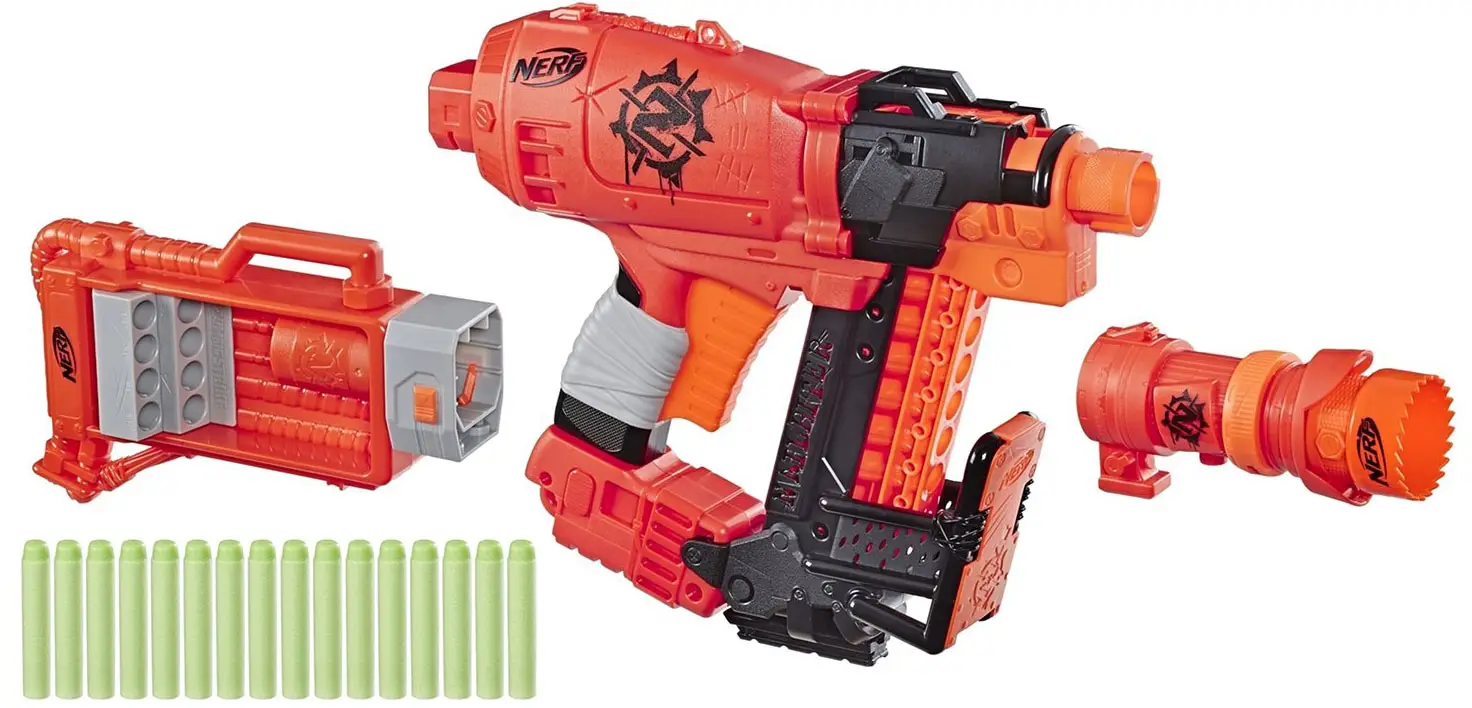 Приготовьтесь и отразить все атаки ужасных зомби с крутым бластером от Нерф! Набор Нейлбитер является частью системы Зомби Страйк Выживший и включает бластер, аксессуары, и 16 стрел Нерф Зомби Страйк Элит.