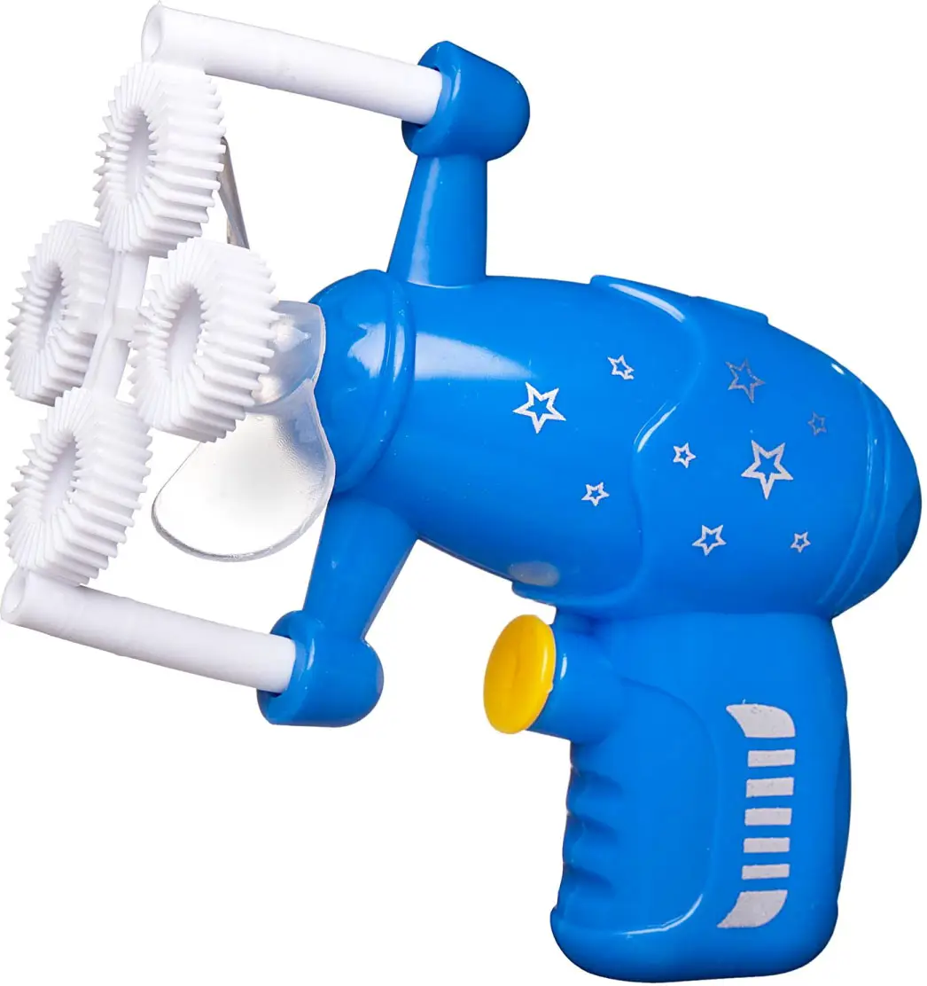 Без мыльных пузырей не обходится ни одно лето. Хотя мыльные пузыри обычно существуют всего лишь несколько секунд, но в эти секунды невозможно оторвать свой взгляд от идеально круглых, переливающихся всеми цветами радуги шариков разных размеров, несущихся наперегонки друг с другом! Налейте мыльный раствор в емкость, окуните насадку на дуле пистолета в мыльный раствор, нажмите на кнопку, активируя вращение вентилятора, и наблюдайте за веселым полетом радужных пузырьков! Для работы пистолета-вентилятора требуется 1 батарейка типа АА (в комплект не входит).