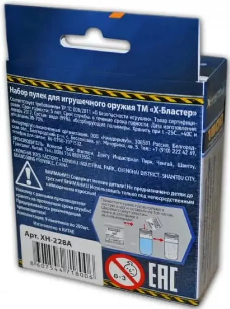- при попадании в цель заряды рассыпаются на мелкие крошки, не нанося никакого вреда людям, окружающей среде и предметам быта, что делает детское оружие «X-Бластер» абсолютно безопасным;