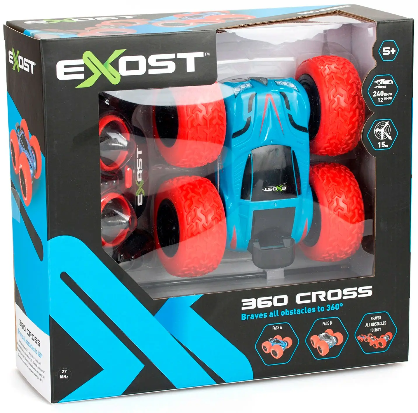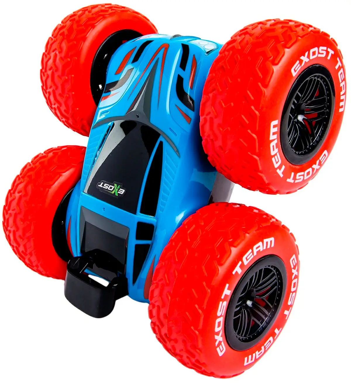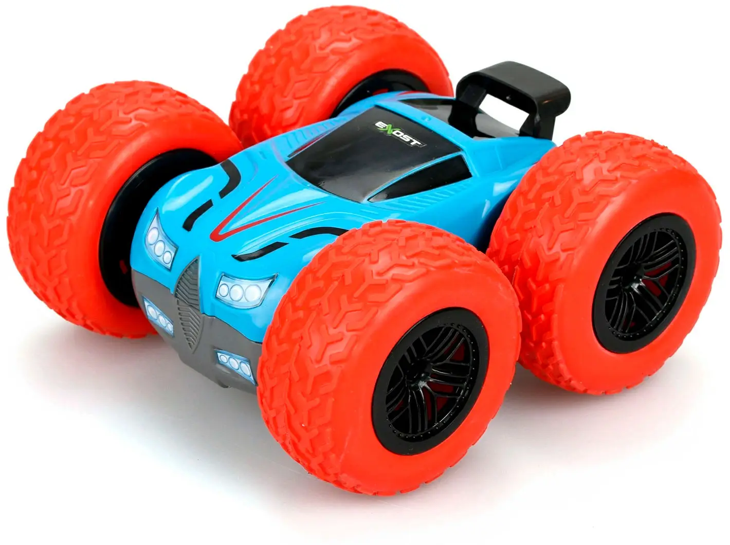 Интересный вариант радиоуправляемой игрушки, выпущенной компанией Silverlit, обязательно понравится любителям необычных моделей. Машинка с мощными амортизированными колесами, резко стартуя или наезжая на какое-либо препятствие, совершает переворот на 360⁰, сохраняя при этом свою устойчивость. При этом двусторонний, укрепленный кузов меняет свой цвет.