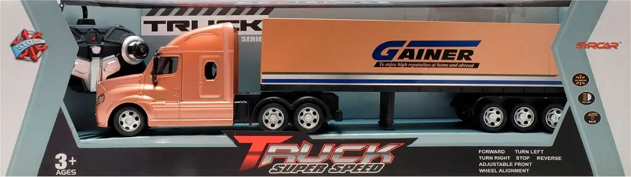 Радиоуправляемая грузовая машина управляется пультом дистанционного управления. Данная игрушка может заинтересовать ребёнка, ведь играя с ней можно вообразить себя в роли водителя. Корпус автобуса достаточно хорошо детализирован и напоминает настоящее транспортное средство.