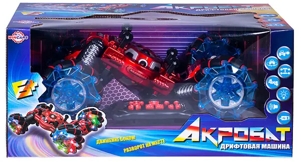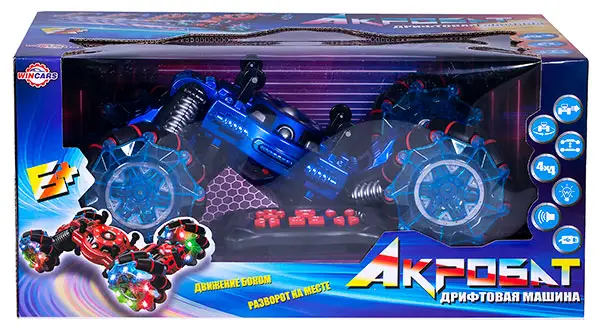 Полноприводная радиоуправляемая машина акробат способна ездить на катках, боком, вращаться на месте, танцевать.