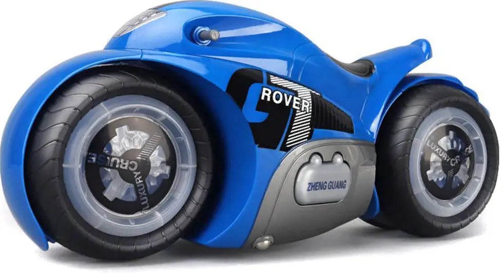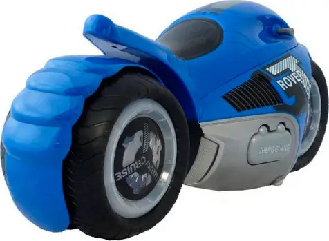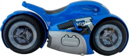 Оригинальный мотоцикл-перевёртыш на радиоуправлении со светящимися диодными фарами и дисками. Мотоцикл может перемещаться по труднопроходимым трассам, при этом выполнять разные трюки и проходить сложнейшие препятствия.
