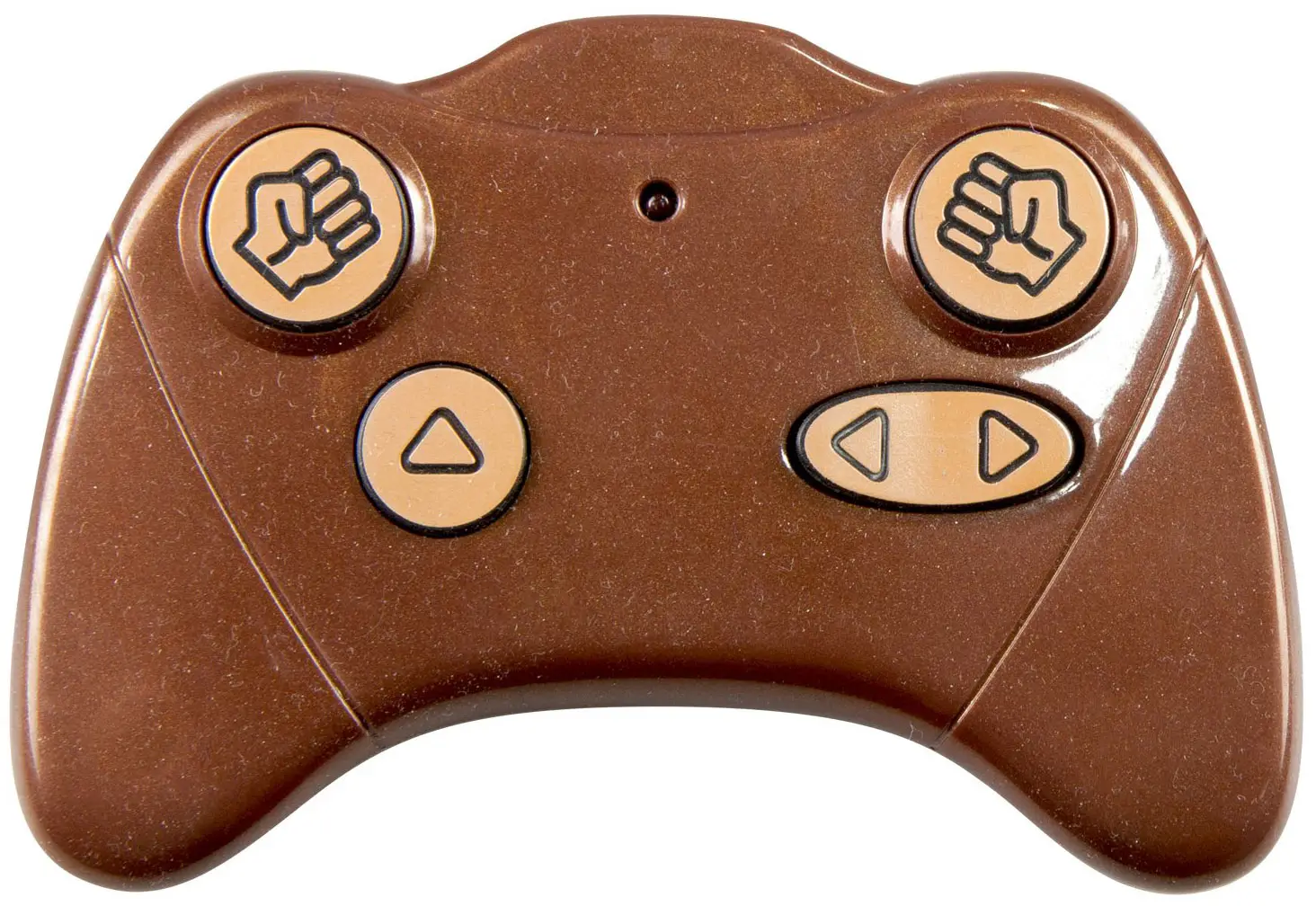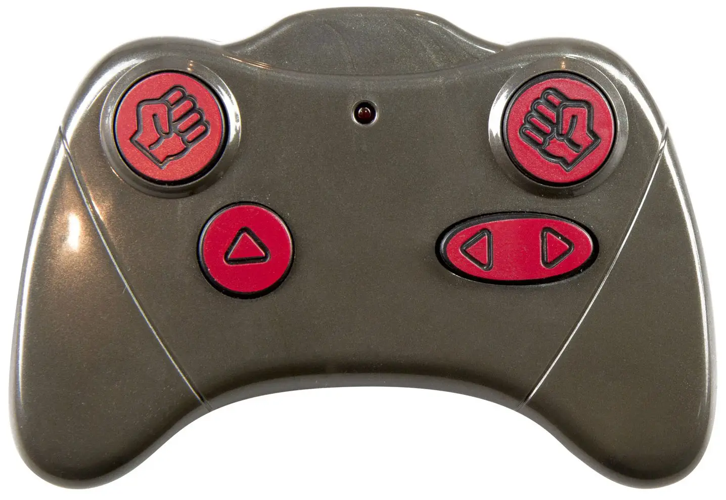 если ребенок играет один, то он управляет выбранным роботом с помощью пульта, а другой робот отражает атаки и нападает автоматически;