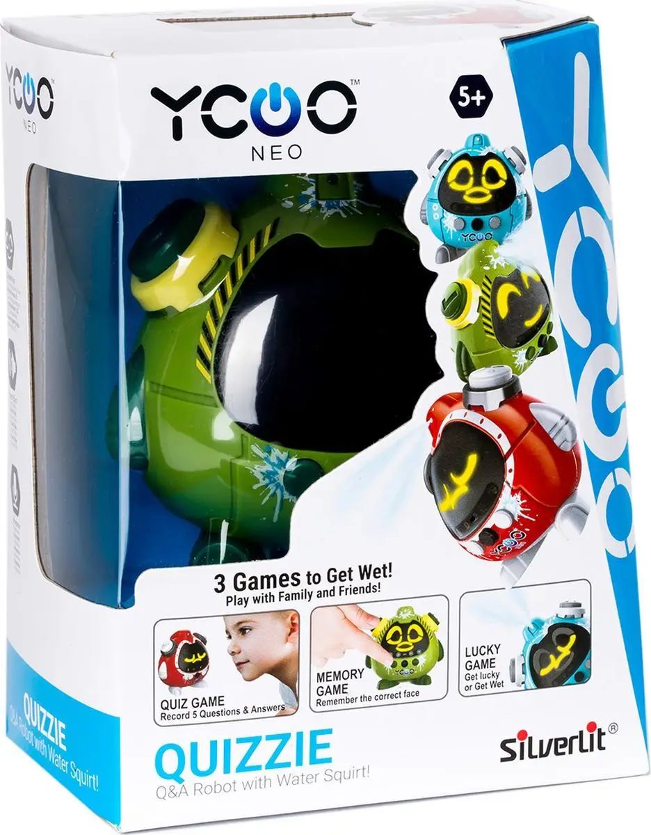 Лотерея. При нажатии специальной кнопки Квизи быстро начнёт менять выражение лица с весёлого на грустное и обратно. Если робот остановится на радостном лице, то можно продолжать игру. Если Квизи замрёт со злым выражением, то порция воды вам обеспечена.