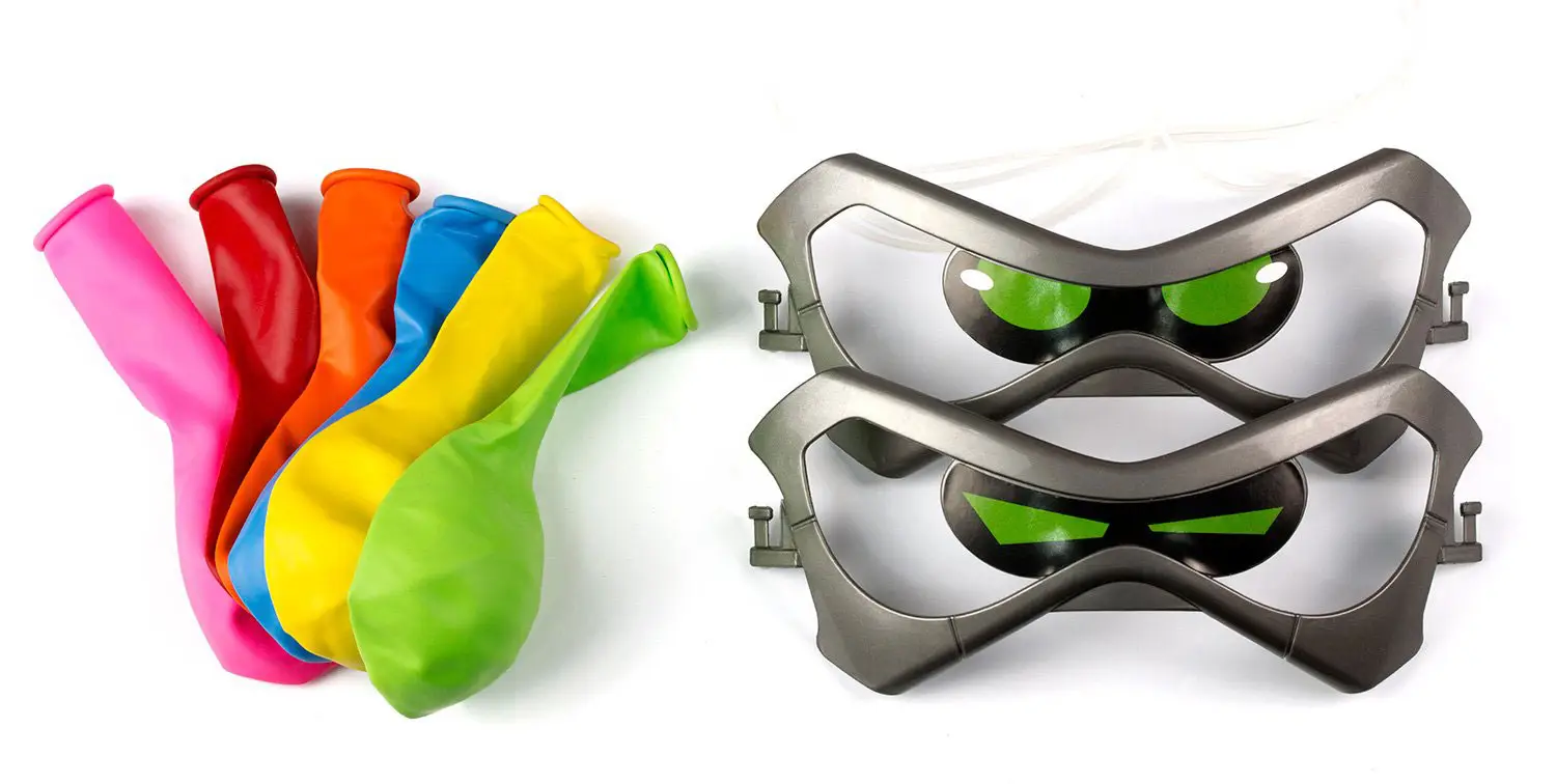 - на каждый шарик надевается серая маска с принтованными глазами;