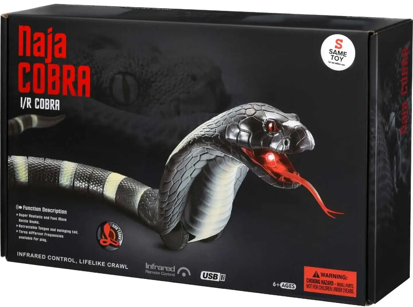 Игрушка имеет реалистичную расцветку, передвигается по полу, копируя пластику настоящей рептилии, шевелит языком. Она умеет двигаться вперед, вправо, влево и вращаться на месте. Кобра управляется при помощи пульта, выполненного в виде змеиного яйца. В игрушке предусмотрен демонстрационный режим. Для его включения необходимо удерживать кнопки движения вперед и назад 3 секунды. Для выхода из режима необходимо удерживать кнопку движения вперед 3 секунды.