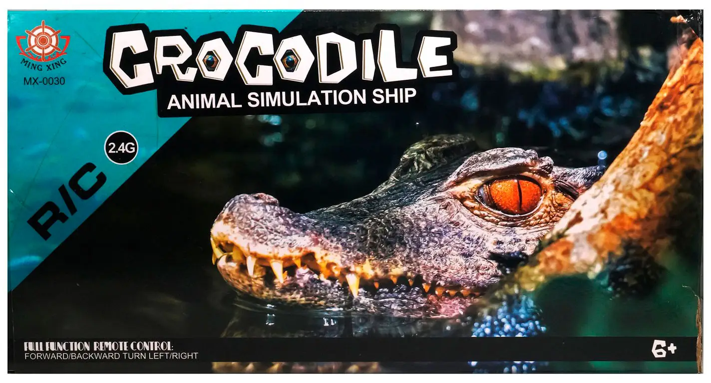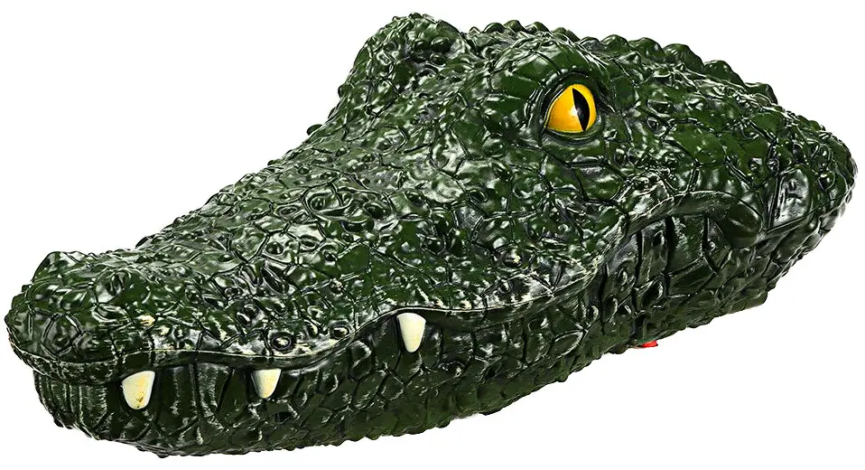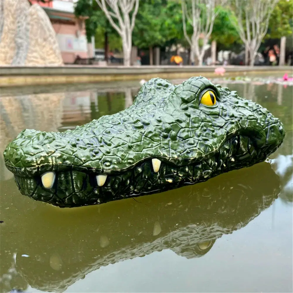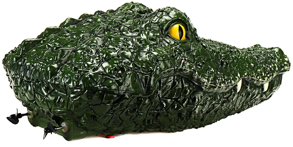 Катер на пульте с внешним видом головы крокодила, имитирует голову и выглядит более реалистично, может использоваться для отпугивания птиц и насекомых из пруда или плавательного бассейна.
