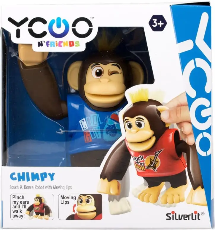 Если малыш дотронется до ушка, то Чимпи с радостным криком побежит. Нажатие на животик вызовет радость и весёлые звуки. Однако не стоит касаться сразу двух ушей, ведь Чимпи этого не любит — она начнёт грозно ругаться и вставать на руки.