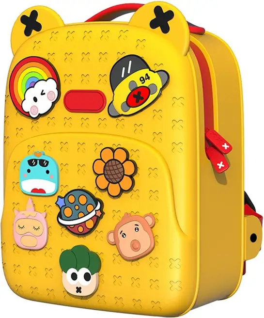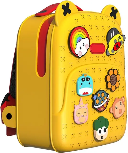 Рюкзак от бренда Koool изготавлен из экологически чистого и гипоаллергенного материала ЭВА. Рюкзак легко мыть и удалять загрязнения. На продукции – свой набор забавных стикеров, которые можно менять местами.