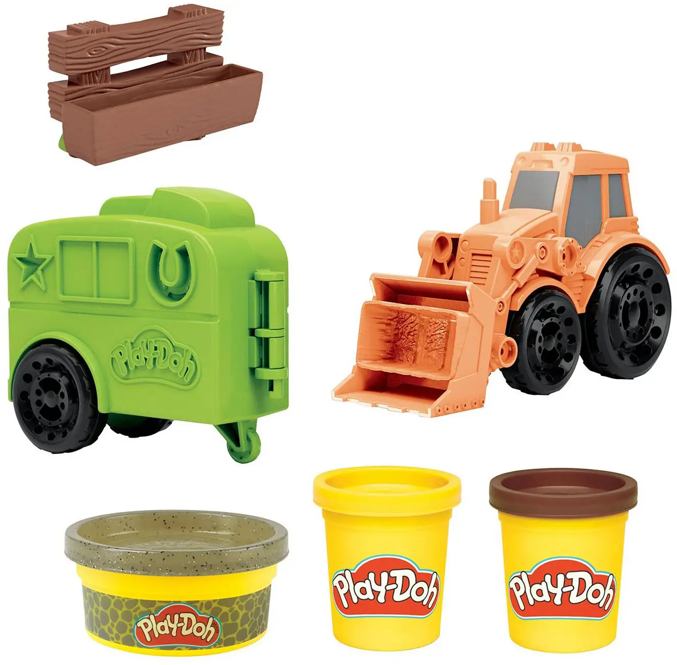 Отправьтесь на ферму прямо на тракторе Плей-До! С помощью прицепа трактора малыш сможет слепить лошадок и поселить их на ферме.