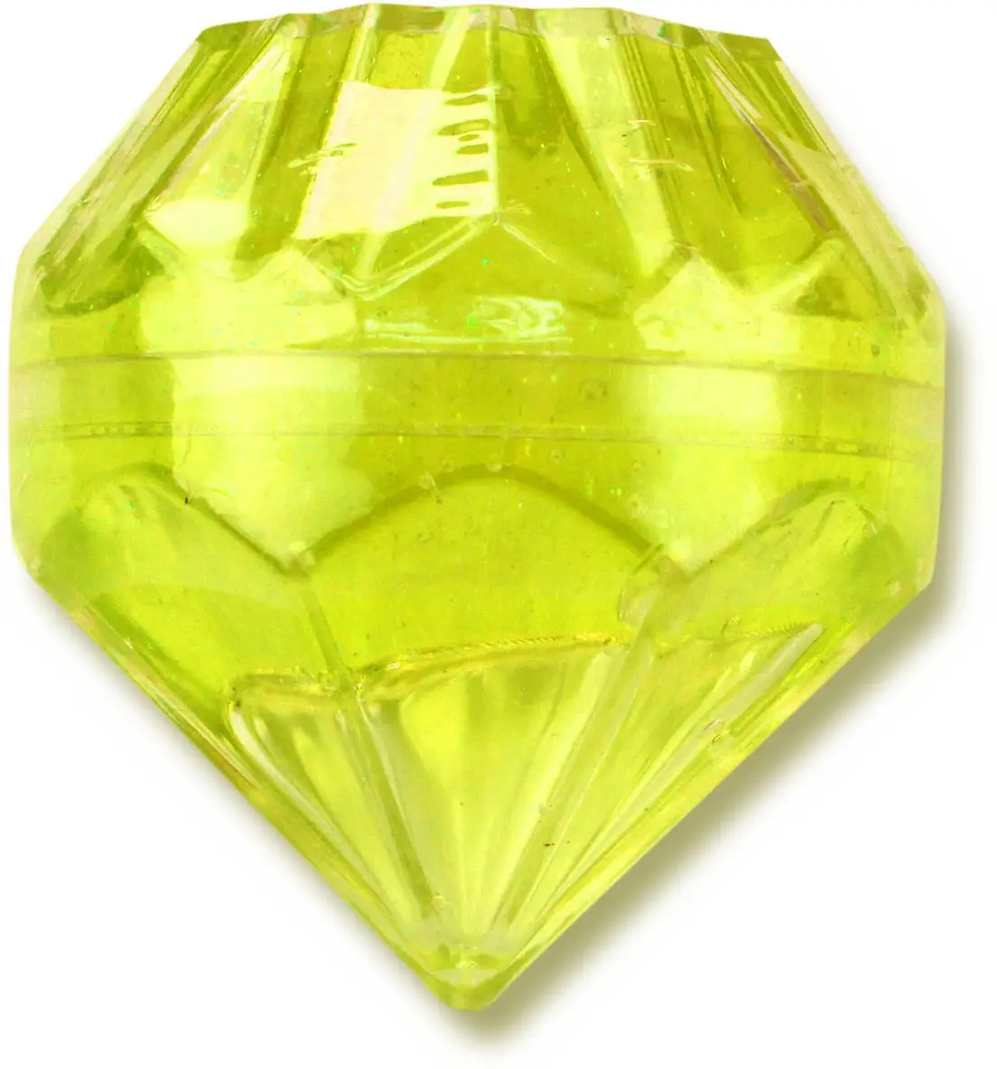 Яркий желтый слайм помещен в красивый объемный алмаз с многочисленными гранями и открывающейся крышкой.