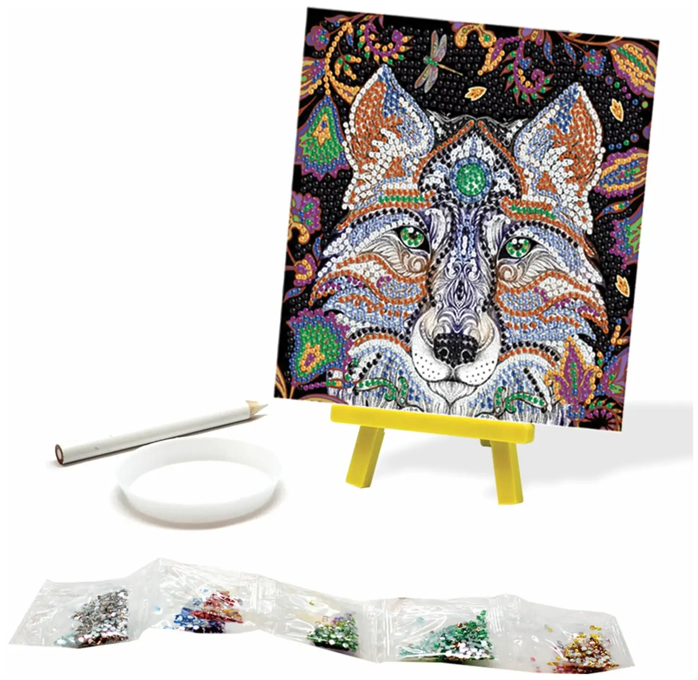 Коллекция алмазных узоров Арт-Терапия погружает в мир фэнтези. Оригинальное украшение интерьера. Алмазные картины сравнительно просты в изготовлении. Необходимо снять защитный слой с клеевой основы, и с помощью карандаша – стилуса приклеить стразы по номеру и цвету.