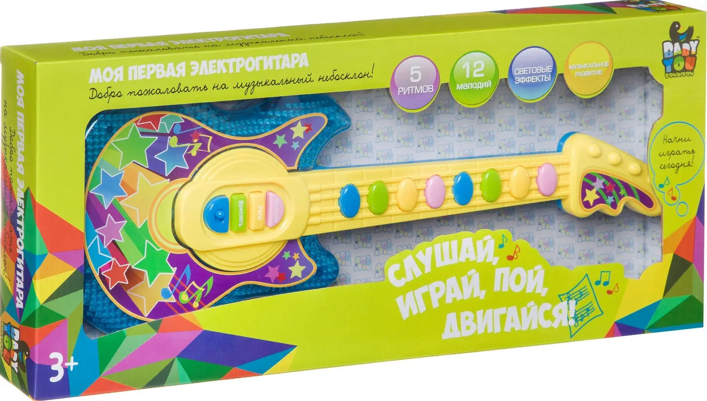 Электрогитара от бренда Bondibon развивает слух и чувства ритма ребёнка. Яркий музыкальный инструмент оснащён встроенными мелодиями, ритмам...