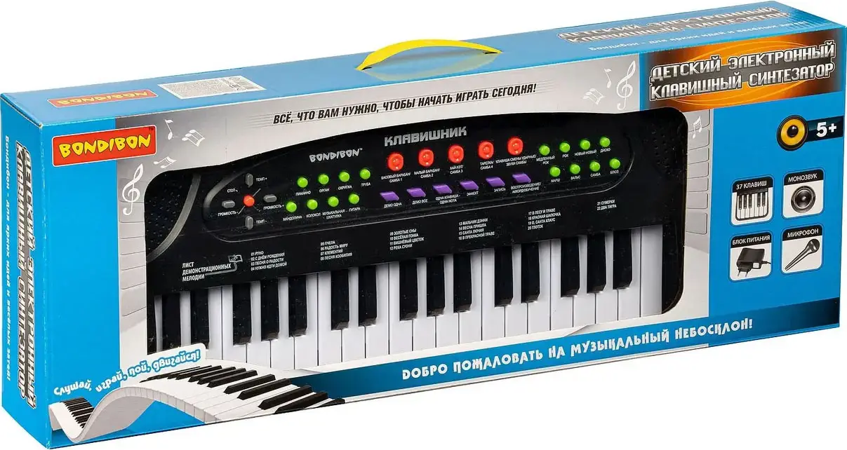 Синтезатор Bondibon, 37 клавиш, с микрофоном и блоком питания, ВВ4945