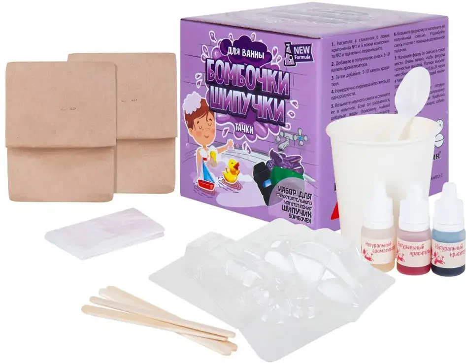 С набором Бомбочки-шипучки можно сделать ароматные и разноцветные бомбочки для ванны. Тогда процесс купания станет излюбленным и увлекательным для ребёнка.