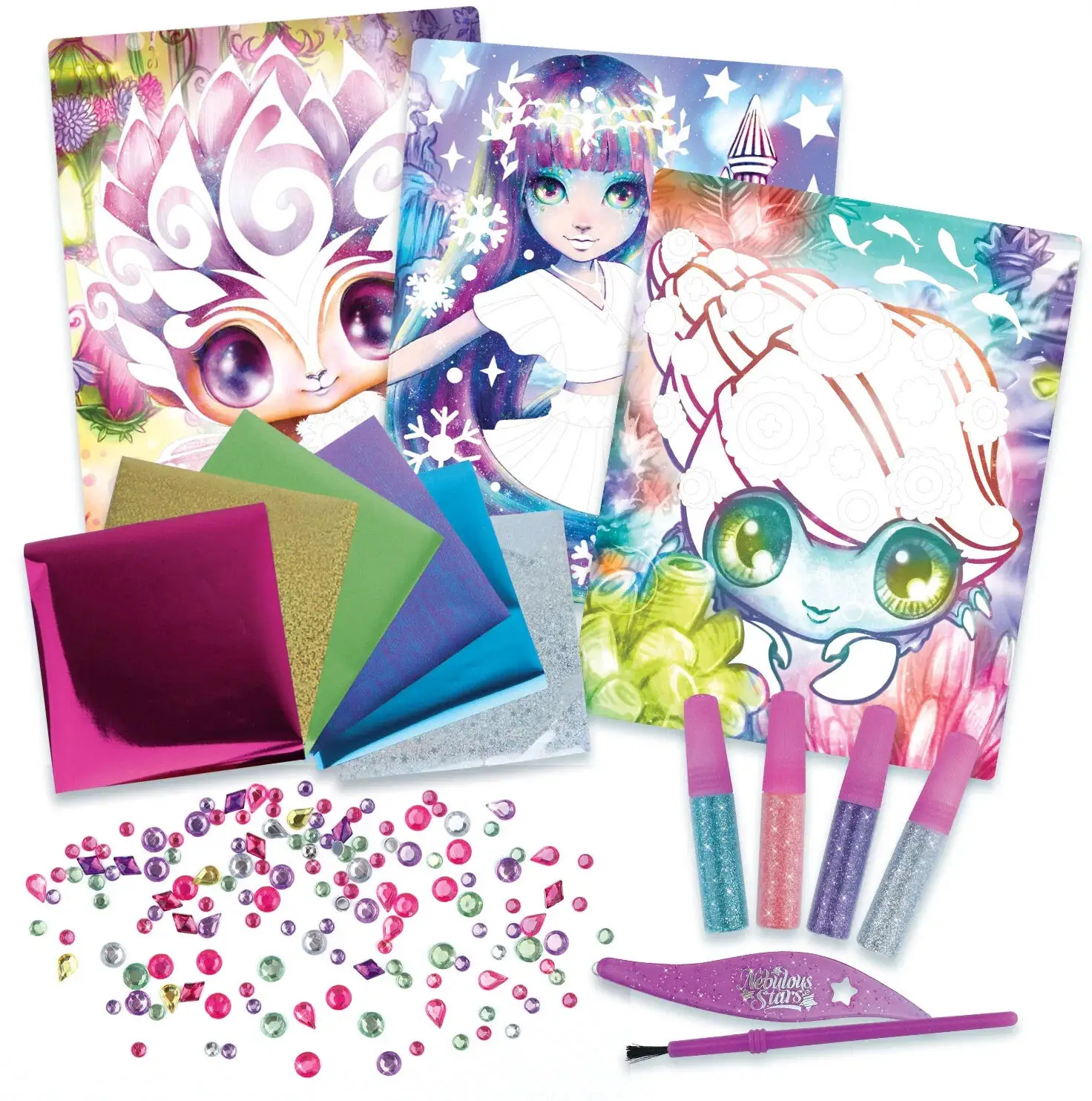 Набор аппликаций из фольги от Nebulous Stars. Создание картин с эффектом металлик методом втирания фольги на готовые эскизы с нанесённым верхним клеевым слоем. К набору прилагается подробная инструкция и история звёздочки Isadora.
