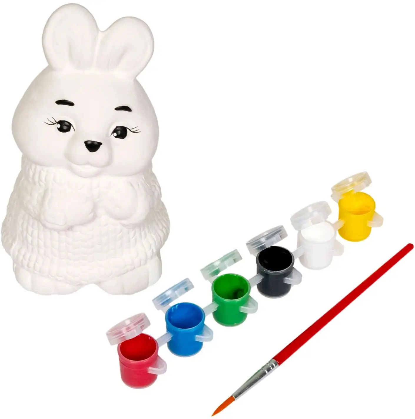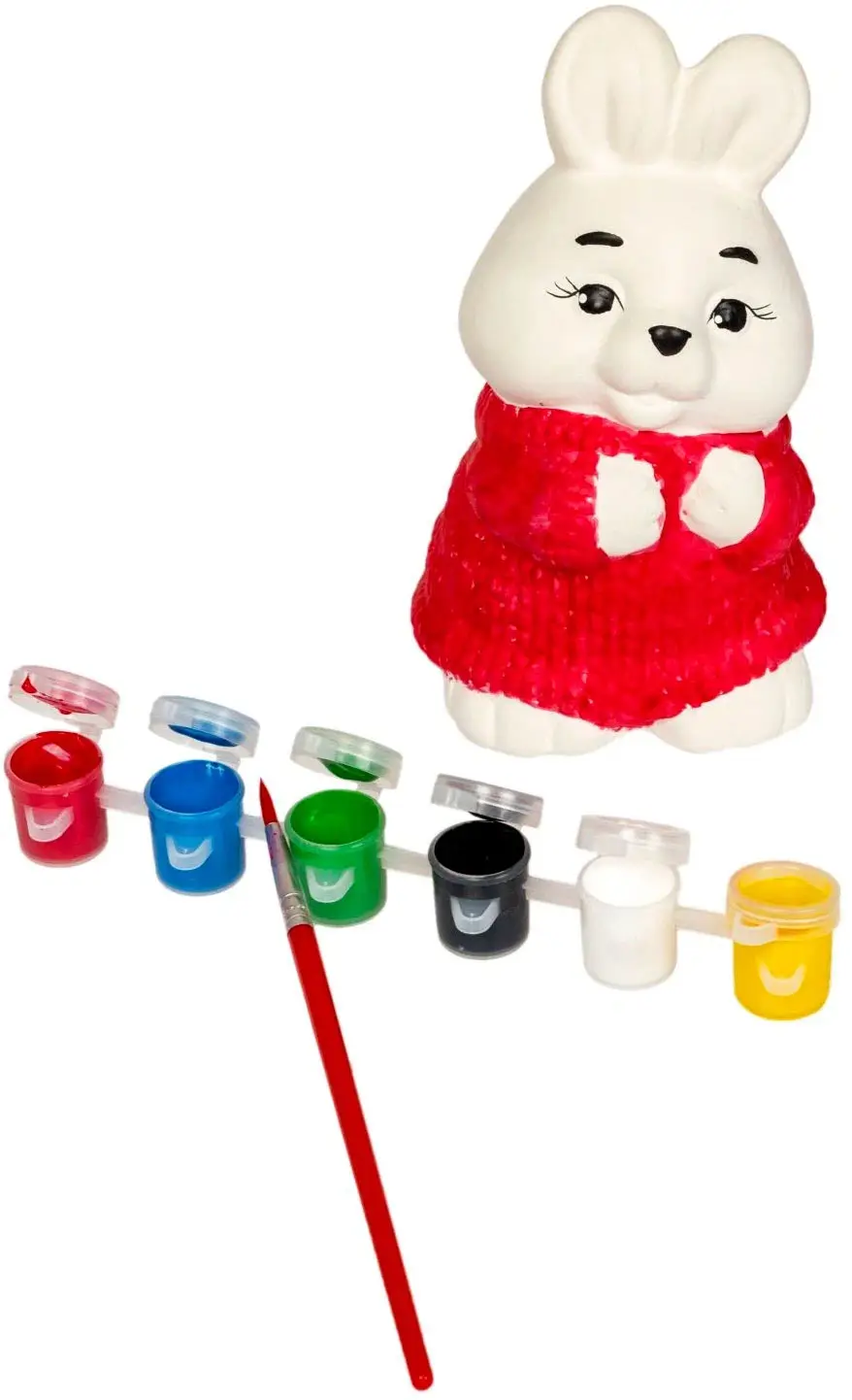 В наборе для творчества – фигурка, 6 цветов красок, кисточка.