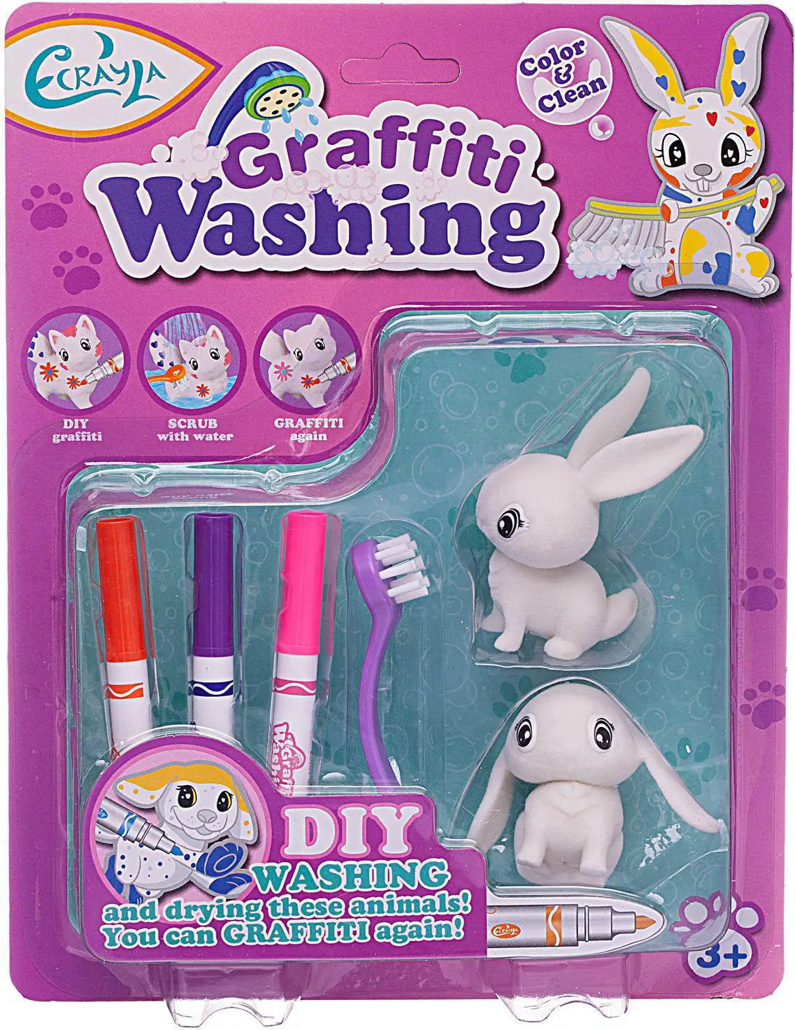 Набор для творчества. Фигурки для раскраски. Любимые животные (2 фигурки, 3 фломастера, фиолетовая щ