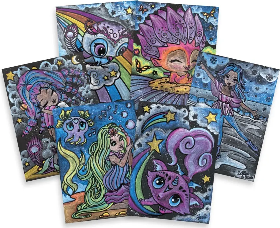 Набор для рисования Млечный путь от Nebulous Stars. Разукрашивание готовых эскизов, нанесённых на досочки черного цвета, используя акварельные краски с эффектом металлик и специального маркера. К набору прилагается подробная инструкция и буклет с историей звёздочки Eclipsia. Предназначен для детей старше 6 лет.