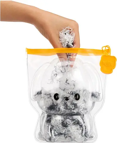 - вытащив ворсинки с верхнего слоя игрушки и собрав весь выщипанный ворс в чехол-упаковку можно получить еще одну игрушку.