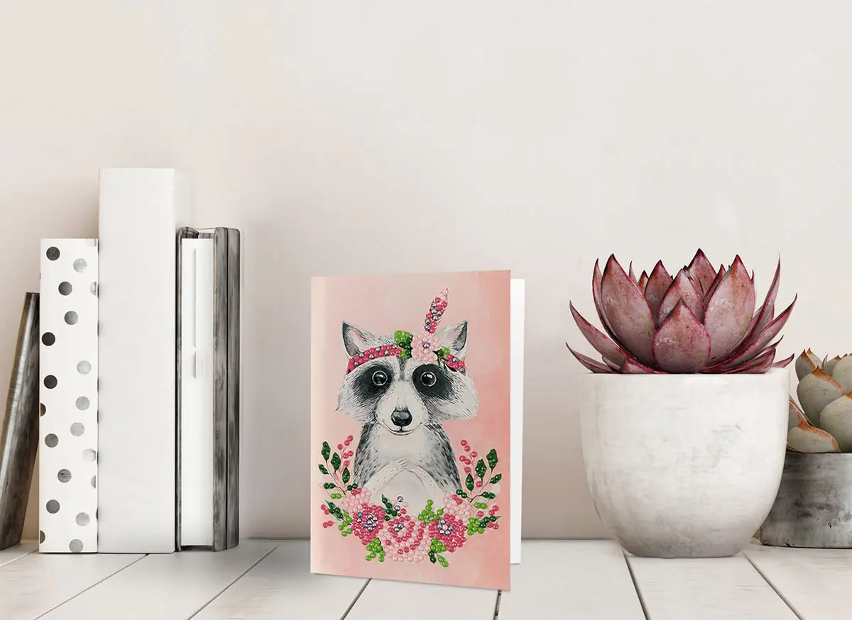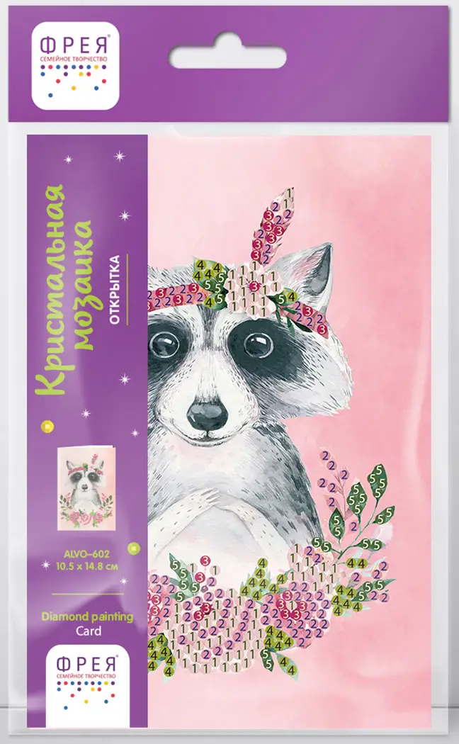 Кристальная мозаика Фрея открытка Енотик с цветами, 14.8x10.5 см