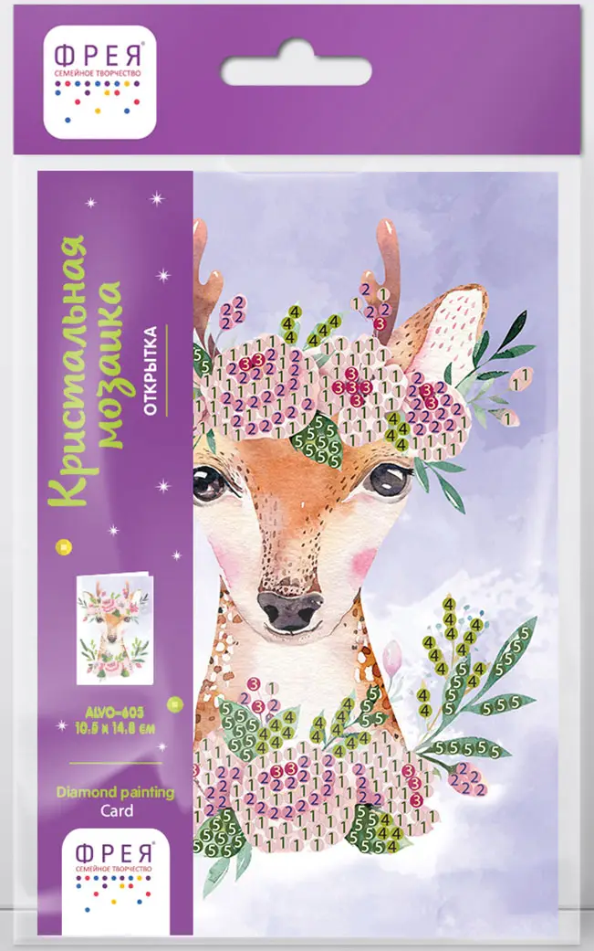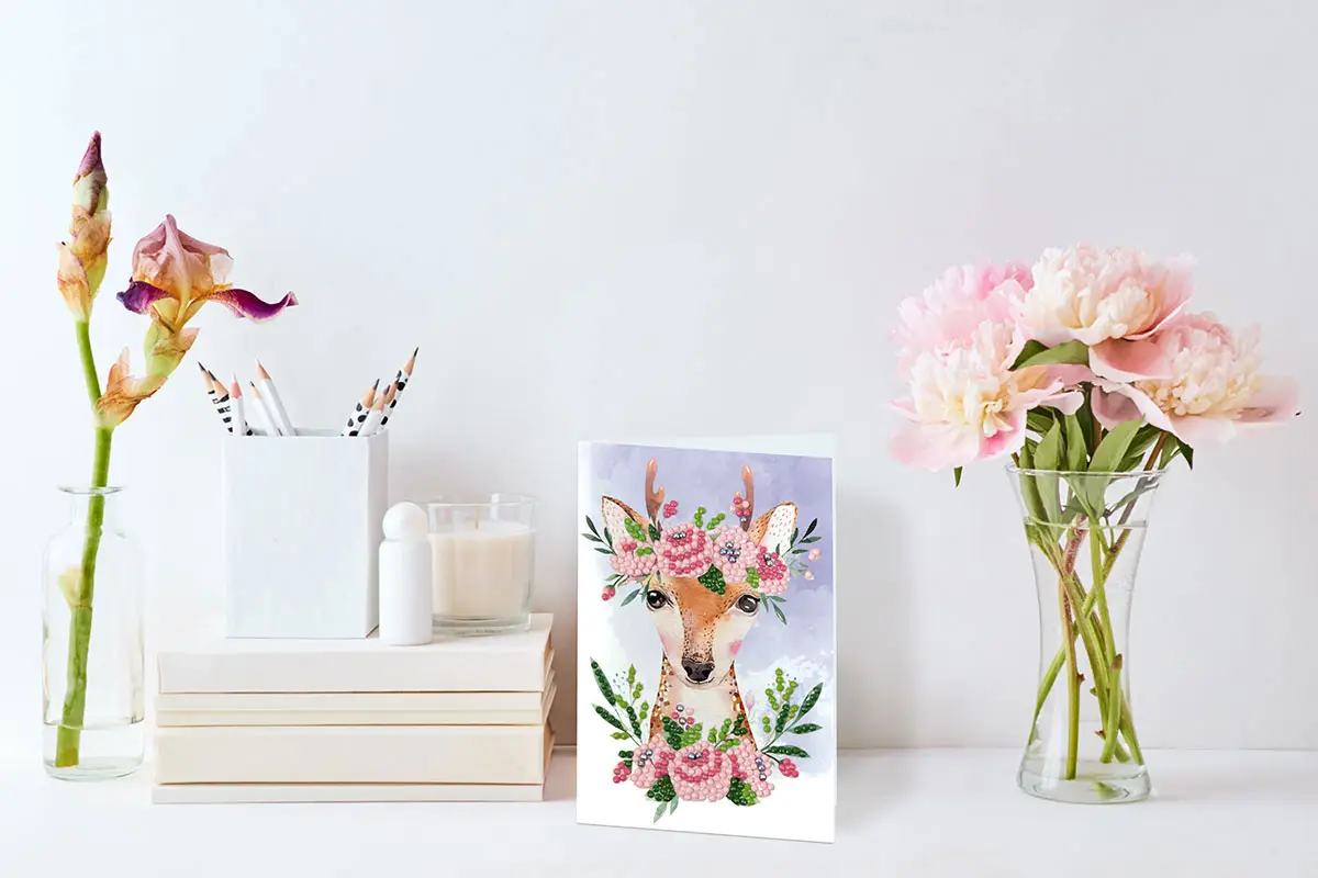 Кристальная мозаика Фрея открытка Оленёнок с цветами, 14.8x10.5 см