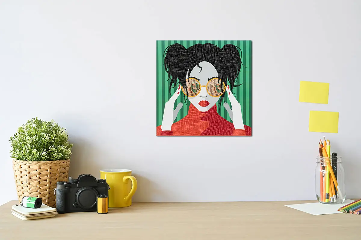 Кристальная мозаика Фрея постер Девушка в красном, 20x20см