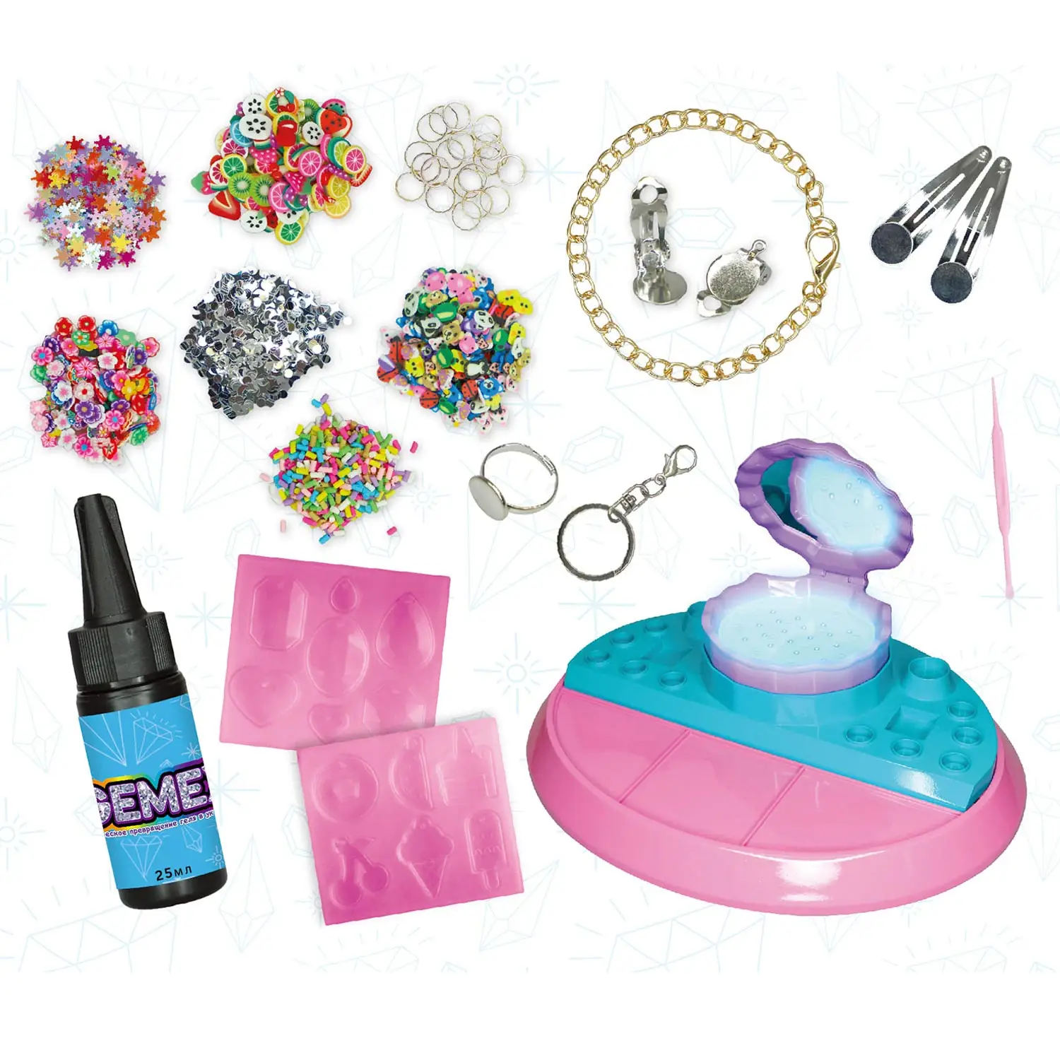 Набор по созданию украшений и аксессуаров из полимерного геля, который сохнет при помощи УФ лампы. Создавая украшения собственными руками ...