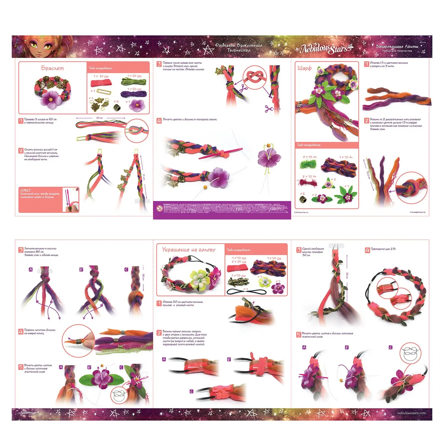 Следуйте пошаговой иллюстрированной инструкции и очень скоро вы научитесь делать венки, шарфы и браслеты из лент, декоративного волокна и цветов. Выразить себя и стать ближе к красоте природы очень просто!