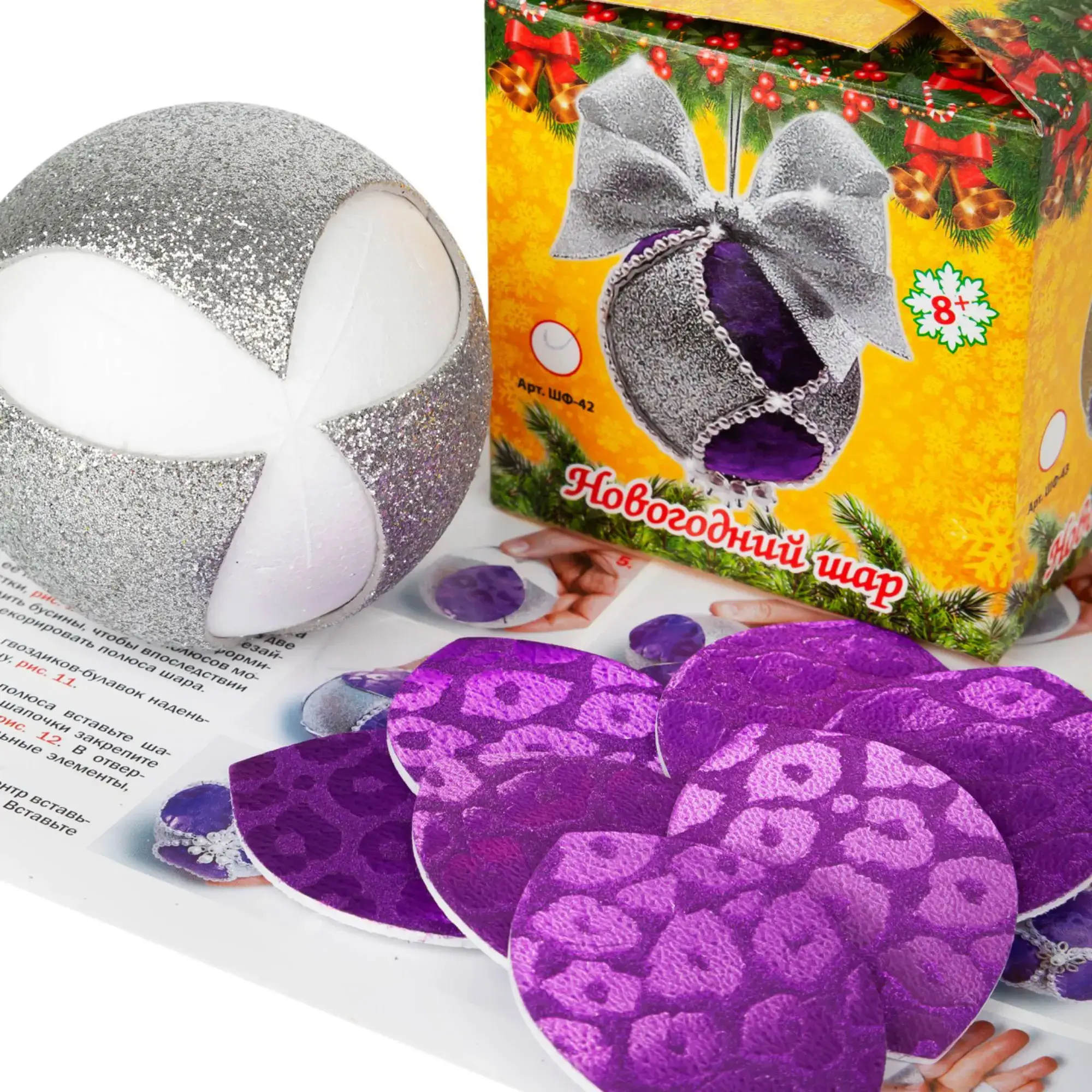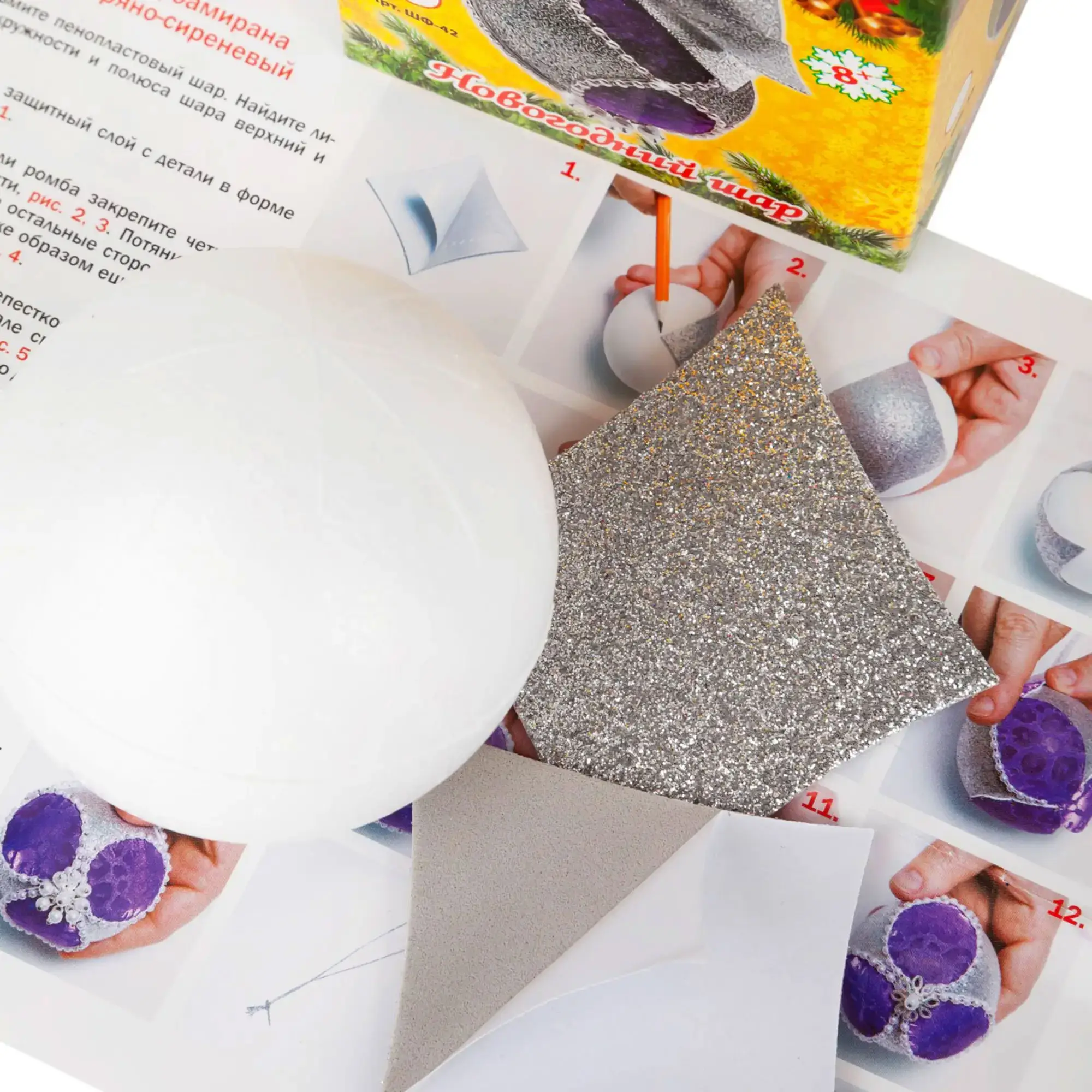 Вместе с набором для творчества от российской компании «Волшебная мастерская» можно создать оригинальное новогоднее украшение для ёлки. Набор представлен заготовкой овальной формы, выполненной из лёгкого пенопласта и разнообразными материалами для её декорирования. В процессе сборки у ребёнка развивается мелкая моторика, практические навыки.