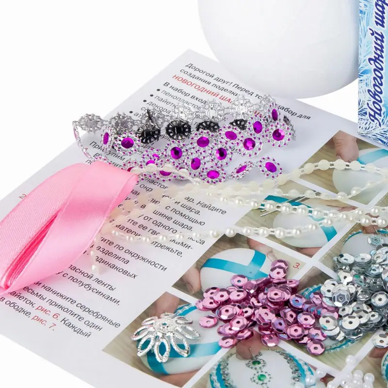 Вместе с набором для творчества от российской компании «Волшебная мастерская» можно создать оригинальное новогоднее украшение для ёлки. Набор представлен заготовкой овальной формы, выполненной из лёгкого пенопласта и разнообразными материалами для её декорирования. В процессе сборки у ребёнка развивается мелкая моторика, практические навыки.
