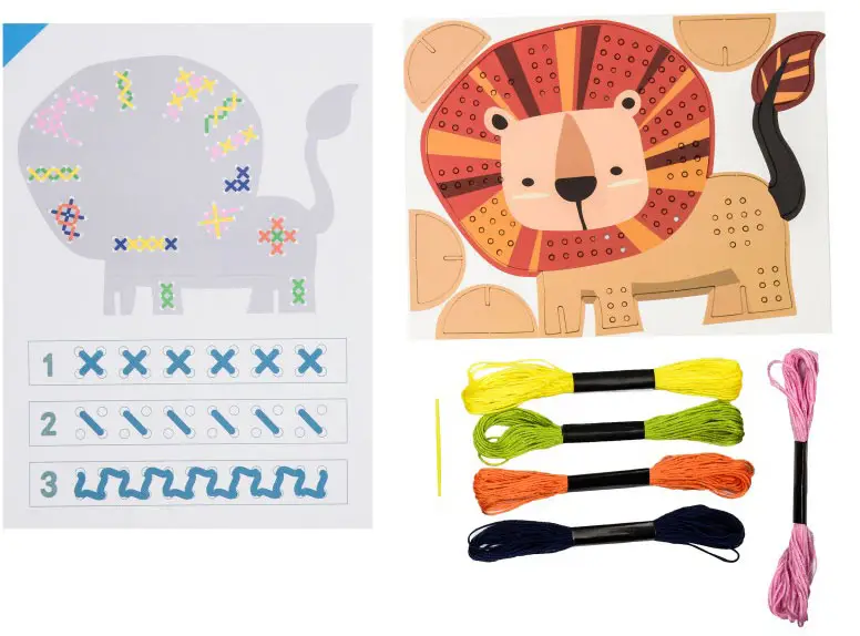 Используя входящие в набор нитки, пластиковую безопасную иглу и элементы декора, ребёнок самостоятельно создаёт из картонной заготовки яркую...