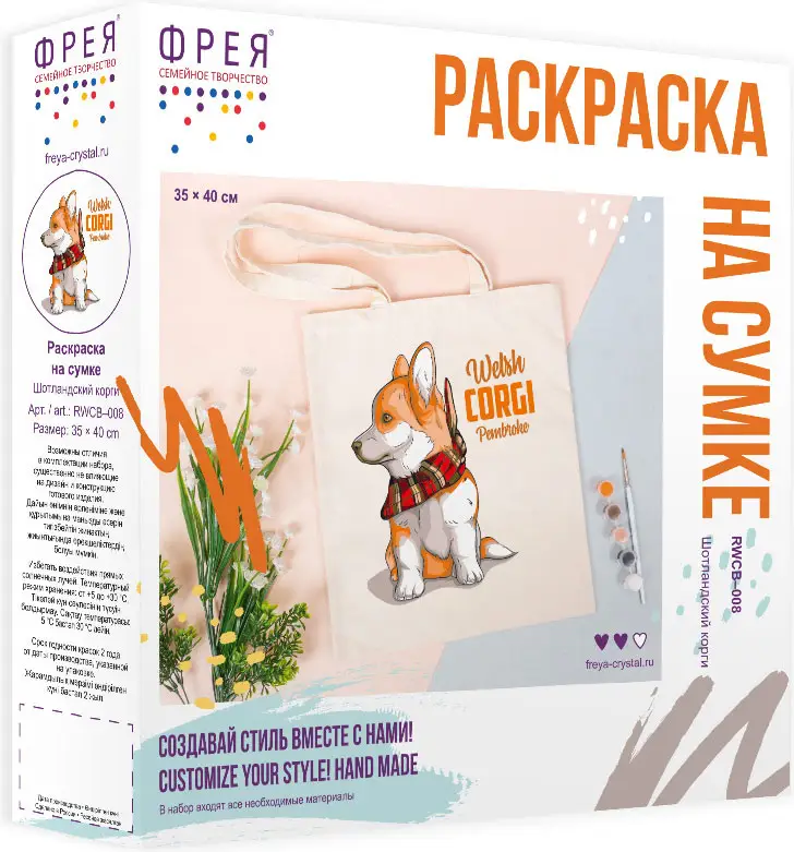 Раскраска на сумке Шотландский корги Фрея, 40х35 см