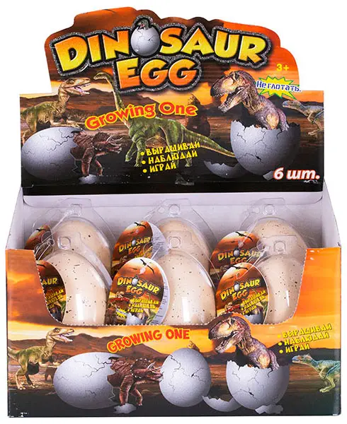 Представляем вашему вниманию замечательный набор, в котором вы найдете яйцо с динозавром внутри. Помогите ему вылупиться! Опустите яйцо в воду полностью примерно на 1-2 дня. Постепенно скорлупа начнет трескаться, и из нее покажется динозавр. Оставьте его в воде еще на некоторое время, пока он не вырастет, благодаря впитывающему влагу материалу, из которого он сделан. Теперь с получившейся фигуркой можно играть! Если спустя какое-то время фигурка немного уменьшится, её можно снова поместить в воду.