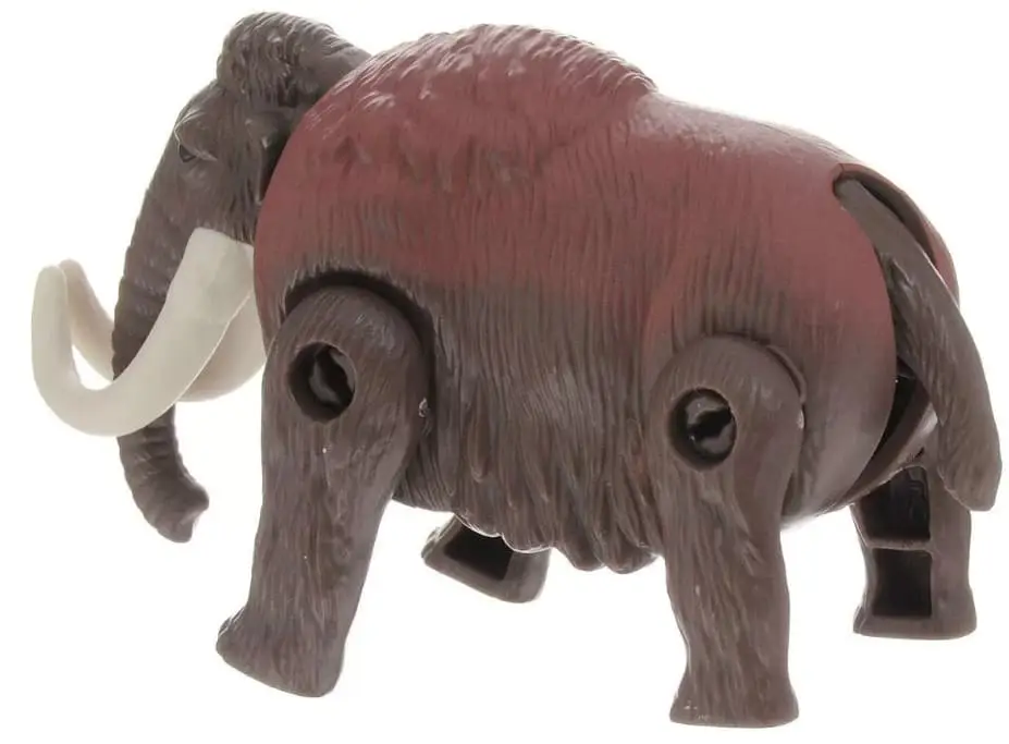 Фигурка Мамонта детально повторяет реального животного того периода и имеет подвижные части тела, благодаря чему может компактно складываться в округлую форму, напоминающую яйцо.