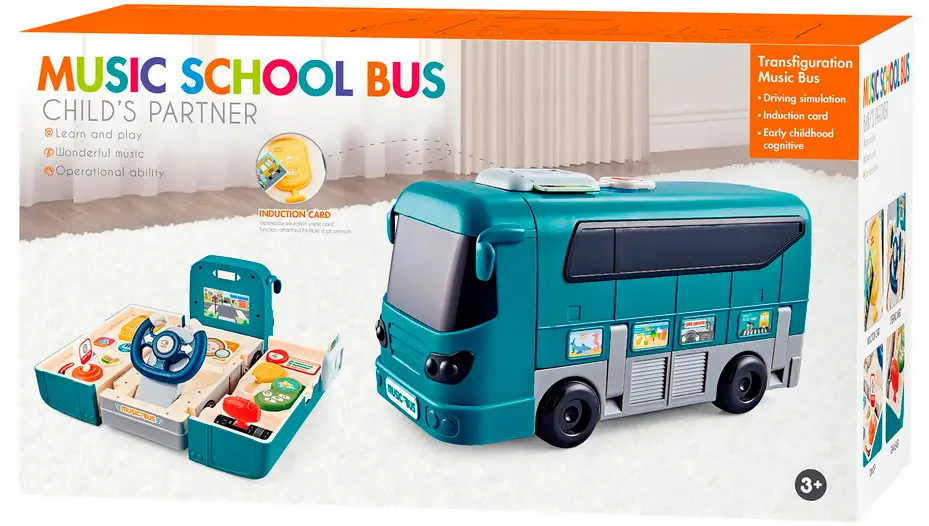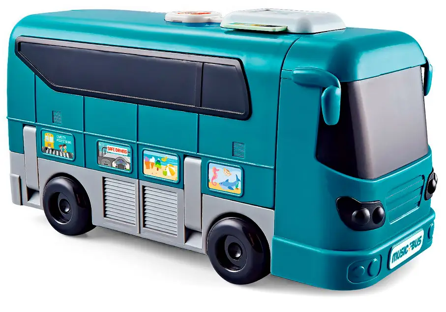 Много кнопок, руль, рычаг, телефонная трубка, мелодии и звуки, световые эффекты, множество развивающих элементов. С таким автобусом не заску...