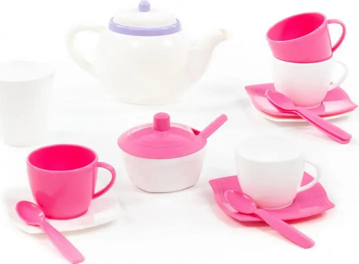 Игрушечный набор посуды Алиса от Полесье – милый игровой набор для организации весёлого кукольного чаепития. В комплект входят 18 принадлежностей, чтобы организовать кукольное чаепитие: чайник, сахарница, чашки, блюдца, ложки и молочник.